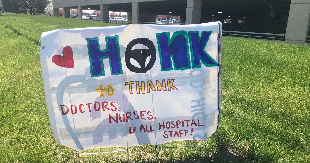 Along Cedar Crest Blvd. in Allentown, outside of our LVH–Cedar Crest campus, members of the community spread messages of hope and thanks to doctors, nurses and other frontline health care providers. These signs are popping up all across the region, and with some right outside our hospital, it gives the community a chance to honk for health care heroes.