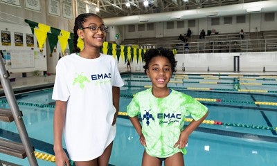“We have a backyard pool, so it was important for Mya to overcome her fear of the water and learn how to swim,” DeLong says. “We tried another program first, and EMAC’s is much better, hands down. It’s really geared to the kids.”