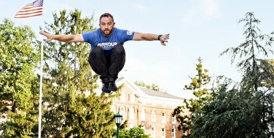 And parkour? Yes, McClellan is back to that too – teaching, dashing, tumbling and vaulting.